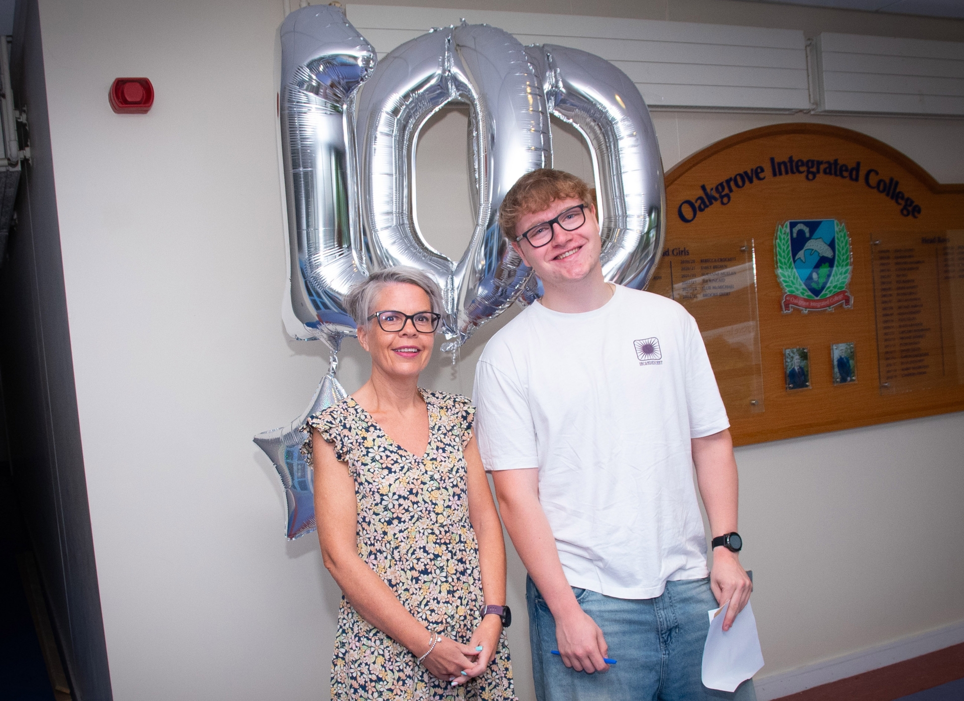 Oakgrove Integrated College Student Troy Gray celebrates his results with teacher Bernie Pollington.