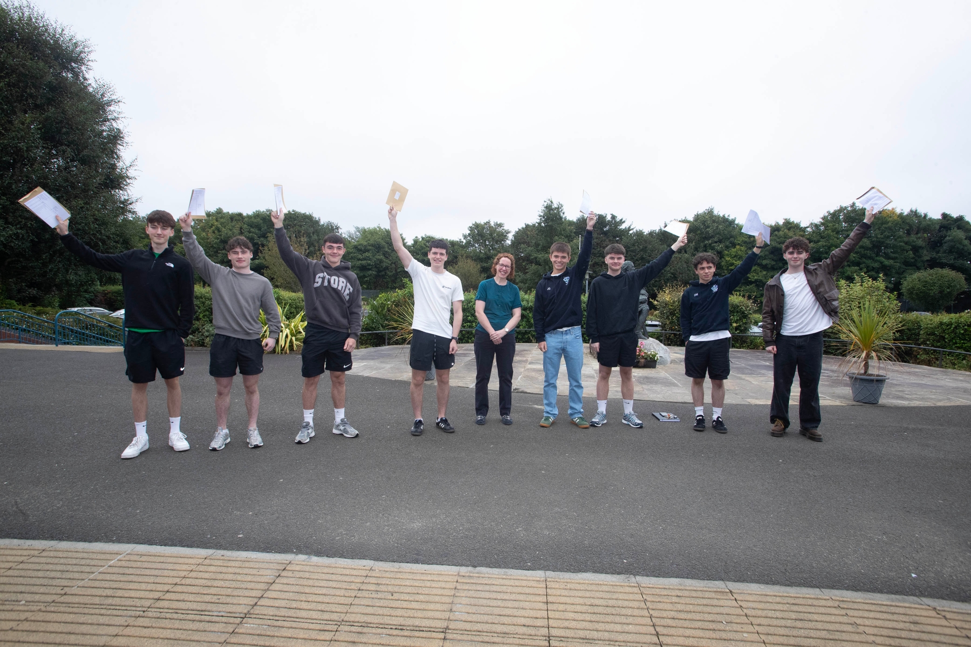 Ms. Ursula Grimley, Vice Principal, St. Columb's College pictured with some of the A Level students who picked up their results.
