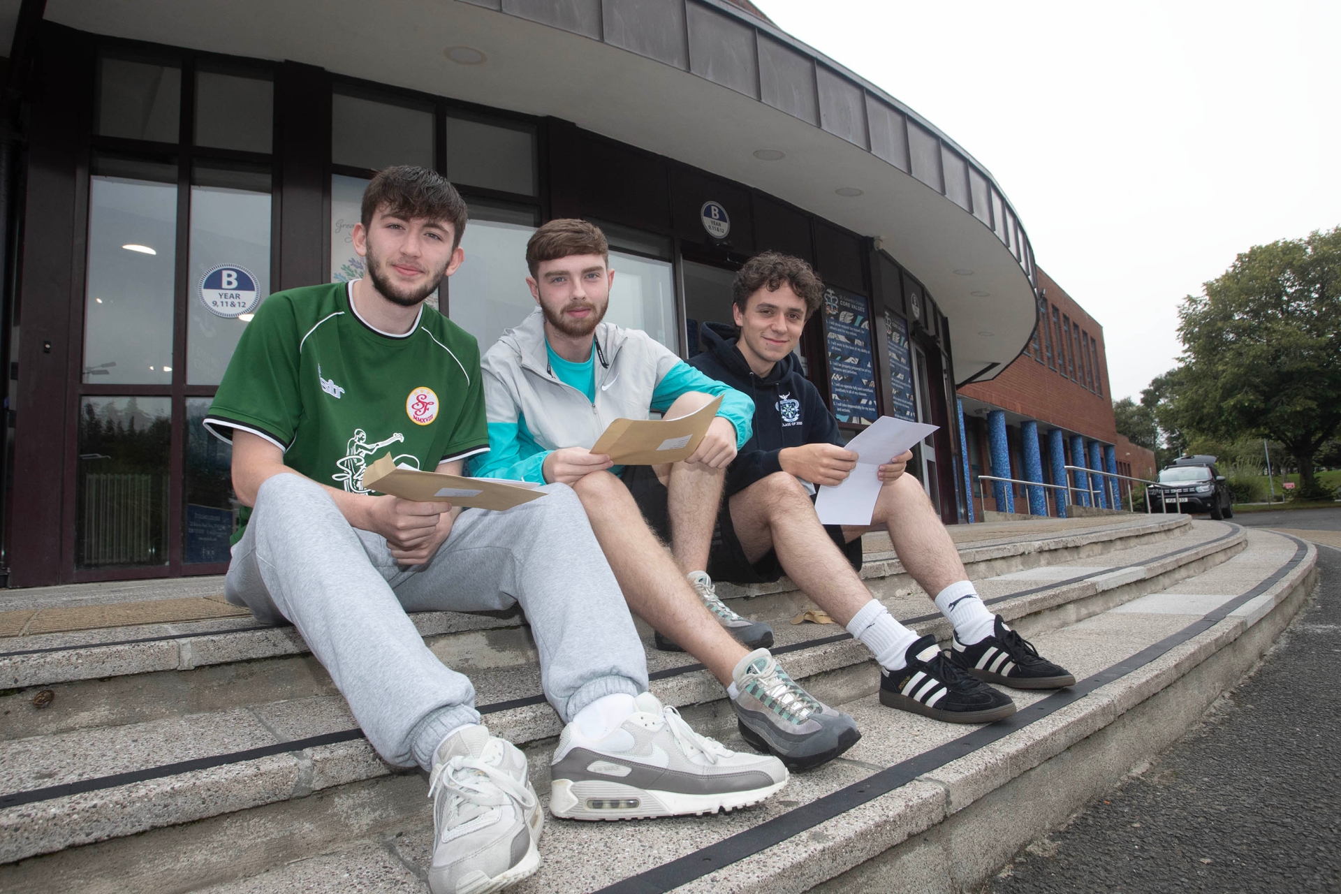 Happy A Level students at St. Columb's College on Thursday morning - From left, Darragh Cassidy, Kelvin Moore and David Mooney.