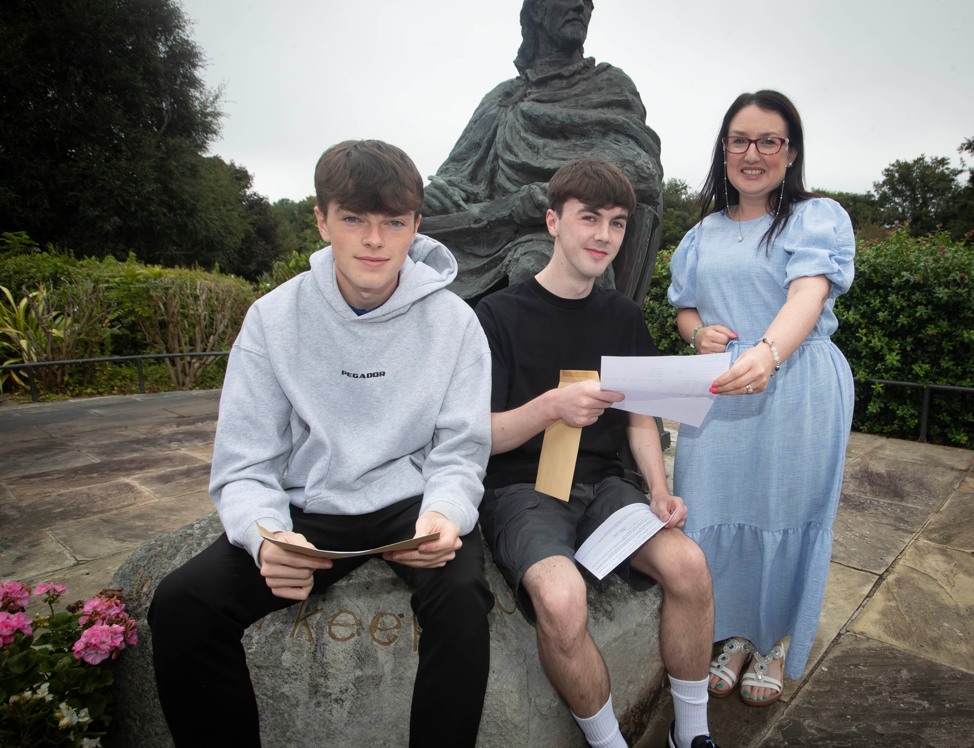 St. Columb's College Principal, Mrs. Caroline McLaughlin pictured with A Level students Tiernan Flynn and Conor Malone.