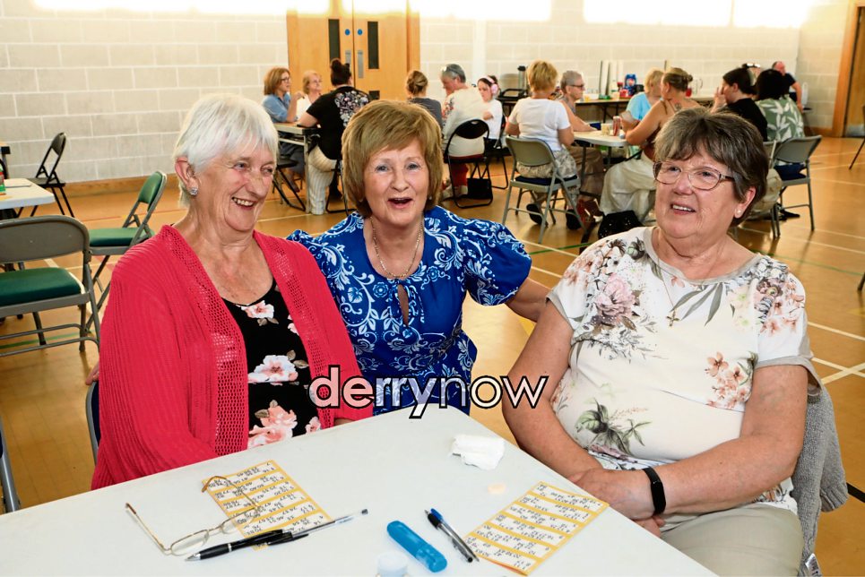 Bridie McGlinchey, Bernadette Gallagher and Robin Meenan at the at the Féile Derry Big Community Bingo held in Bishop's Field Sports Centre. (Photos - Tom Heaney, nwpresspics)