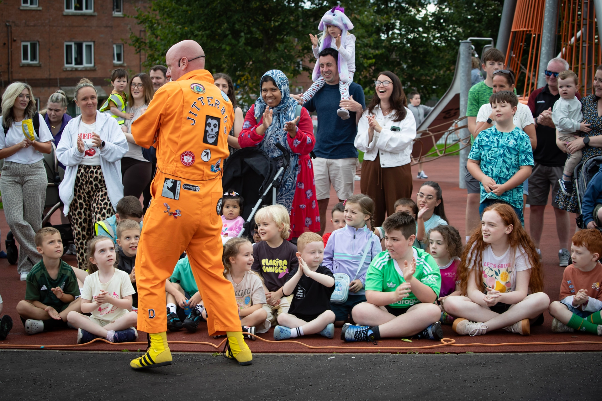 Jitterbug entertaining the audience at Brandywell Park during Thursday evening's Feile event 'The Greatest Show.' (Photos: Jim McCafferty Photography)