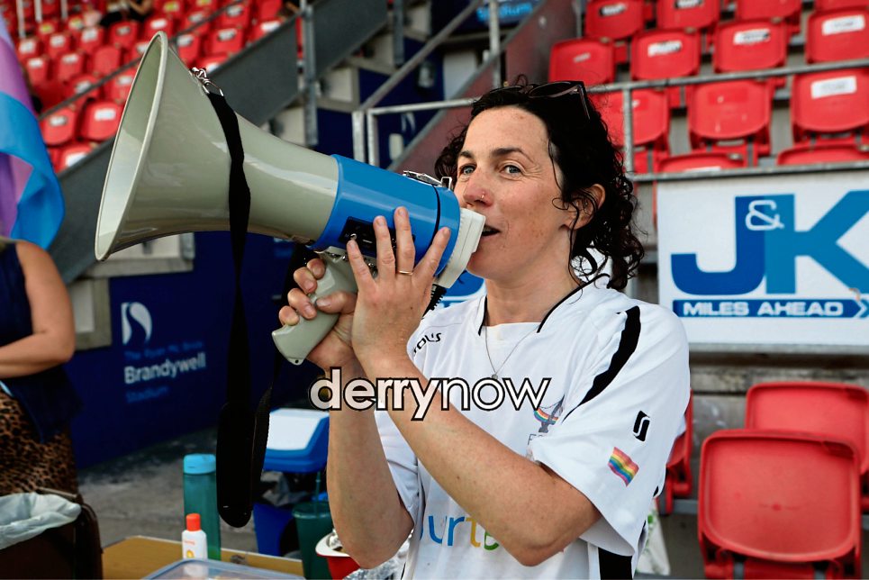 Maeve O'Neill speaking to the teams before kick-off.