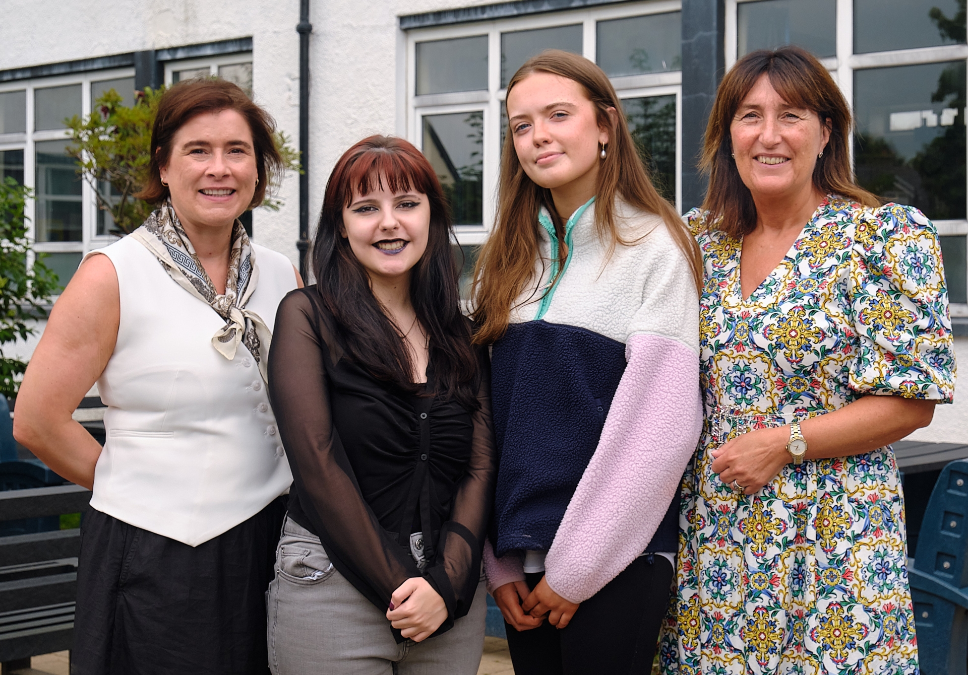 St Colm’s High School, Draperstown Top A-Level Girls - Kate Noonan and Aoife Frain, pictured with vice principal Mrs Devlin and principal Ms McAllister.