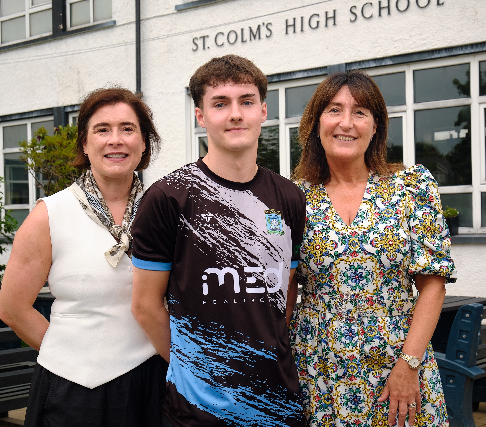 Top achieving Boy at A-Level at St Colm’s High School, Draperstown, Brian Quinn, pictured with vice principal Mrs Devlin and principal Ms McAllister.