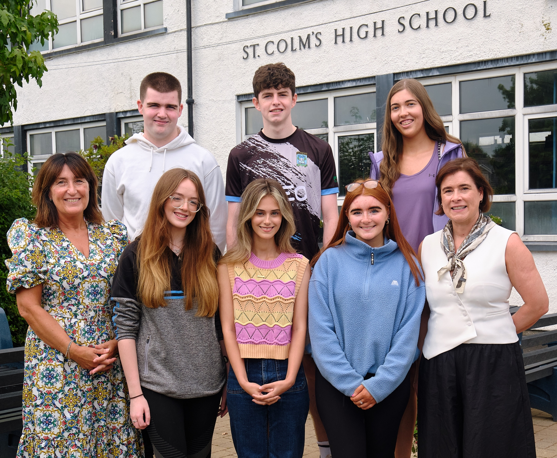 Students who achieved 1A or more at A-Level pictured with principal at St Colm’s High School, Draperstown, Ms McAllister and vice principal Mrs Devlin. (Photos: Adrian Robinson)
