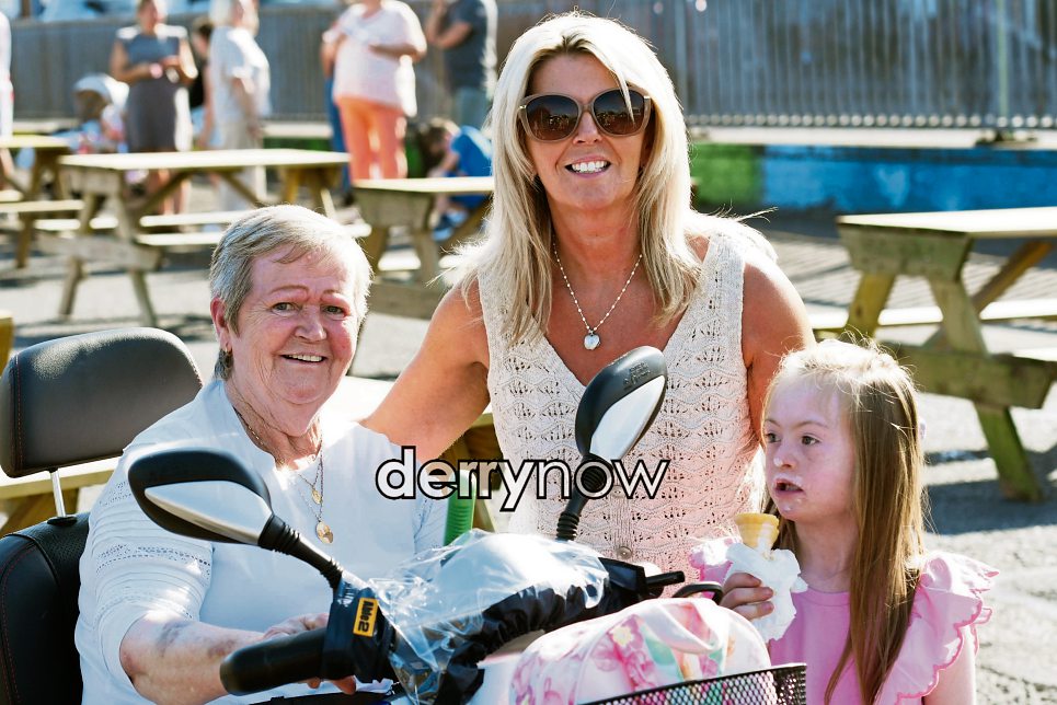 Evelyn, Roisin and Zara Tyre enjoyed the Wan Big Street Party held by Feile Derry at Central Drive.
