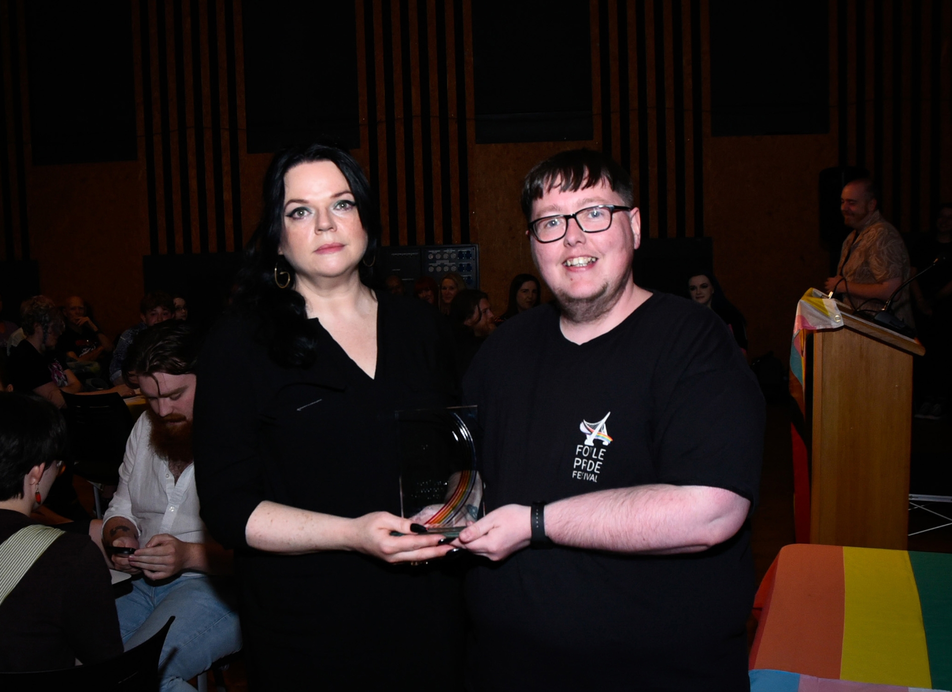 Jason Dunne presents the Transgender Community Award to Mel Bradley.