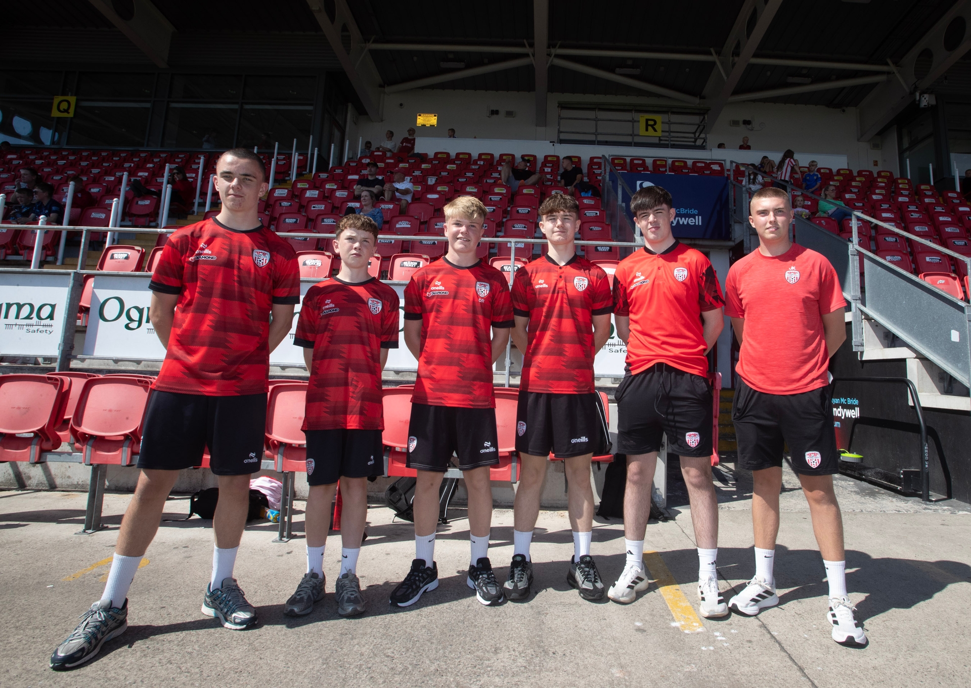 The young referees who officiated at the Feile's 2025 Annual Ryan McBride Cup in the Brandywell on Thursday afternoon. (Photos: Jim McCafferty Photography)