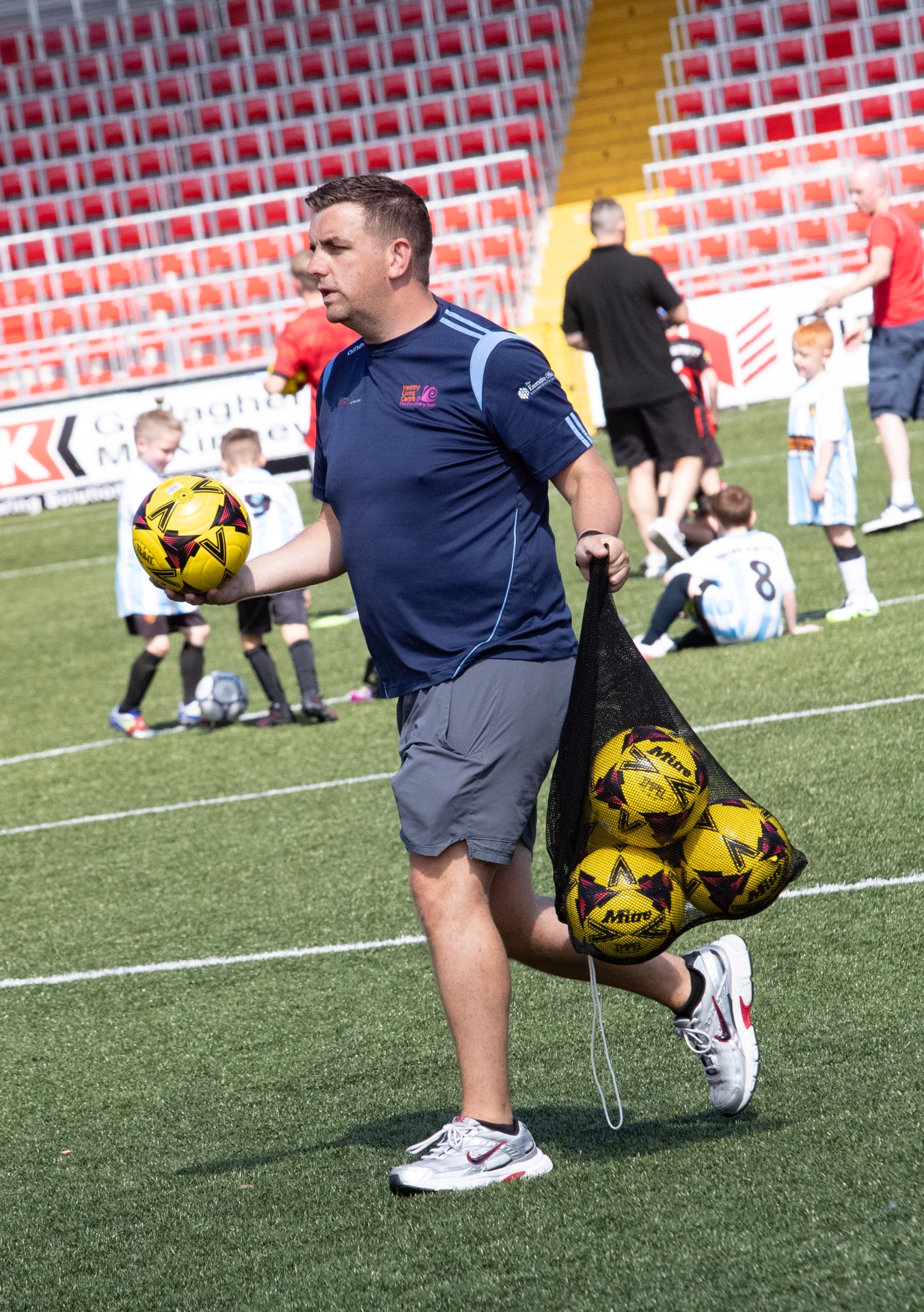Tournament organiser Mo Mahon making sure all games have footballs.
