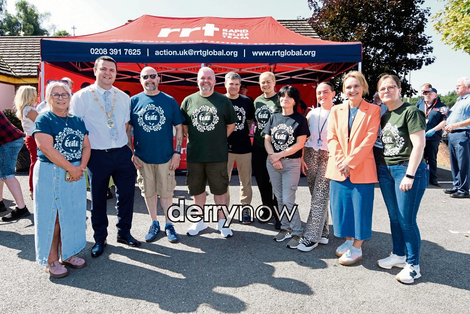 The Mayor, Councillor Ruairi McHugh, pictured with staff and volunteers at the Feile Derry House in the Wells BBQ on Friday. (Photos: Keith Moore/nwpresspics)
