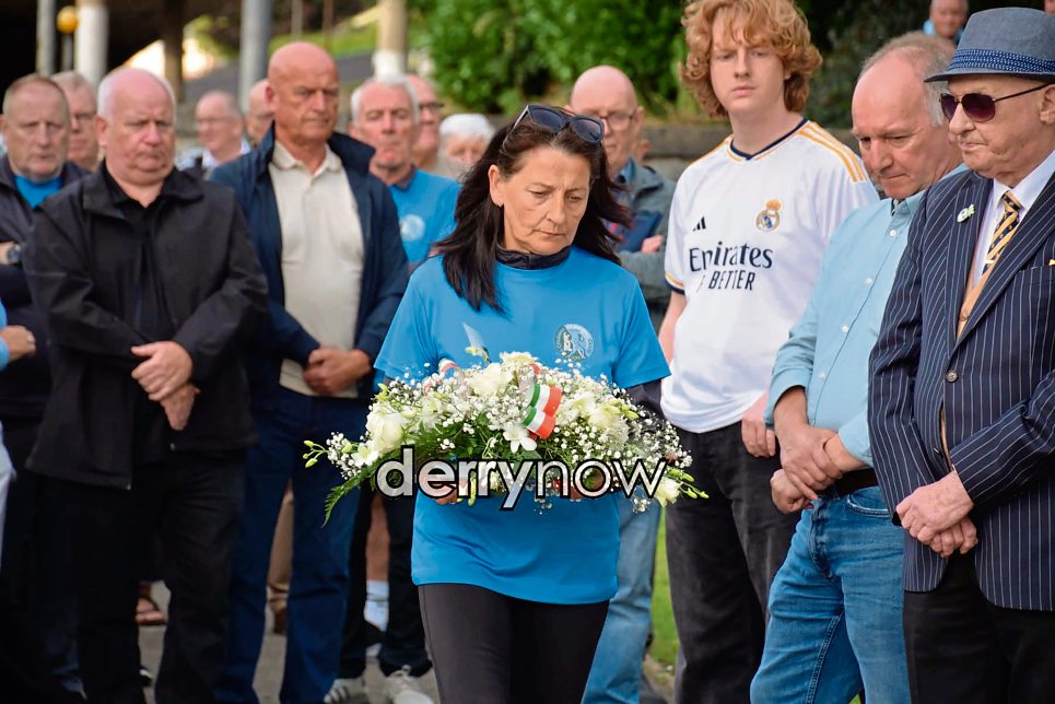 Family and friends observing a minutes' silence at Óglach Charles English 40th anniversary held at the Republican Monument, Lecky Road.