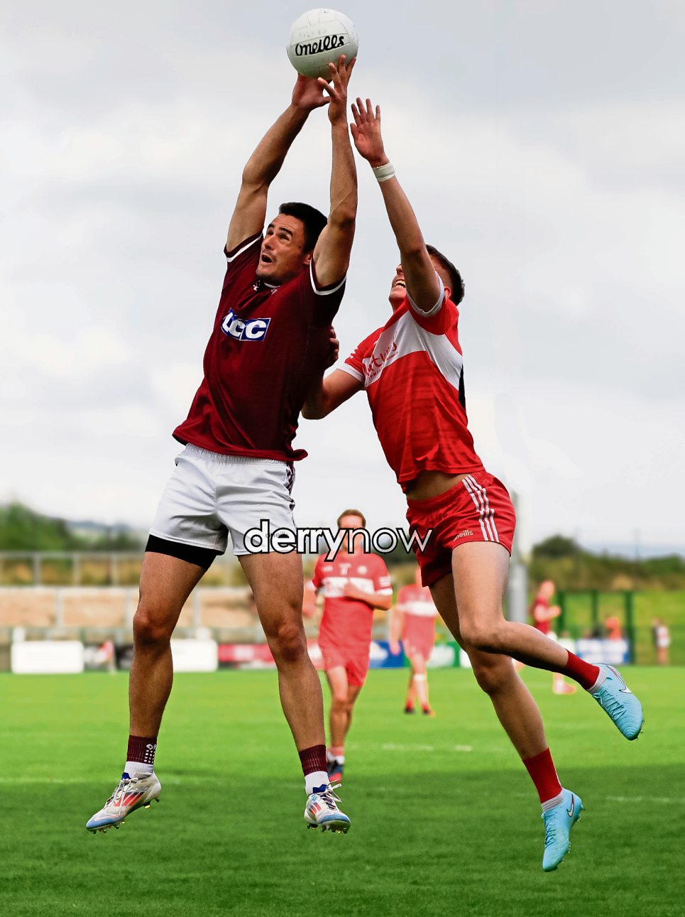Slaughtneil's Chrissy McKaigue wins this ball.