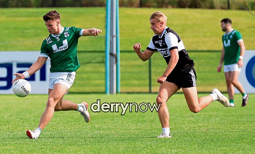 Newbridge's Mark Doherty prepares to send the ball up the field.