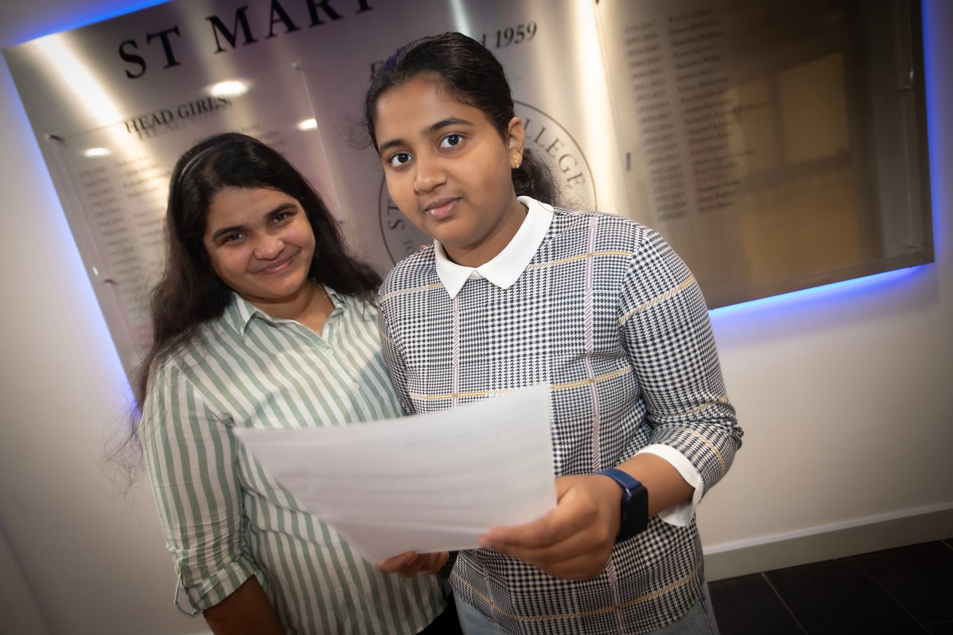 St. Mary's College student Ann Marie Biney and her mum Nimmy checking GCSE results on Thursday. (Photos: Jim McCafferty Photography)