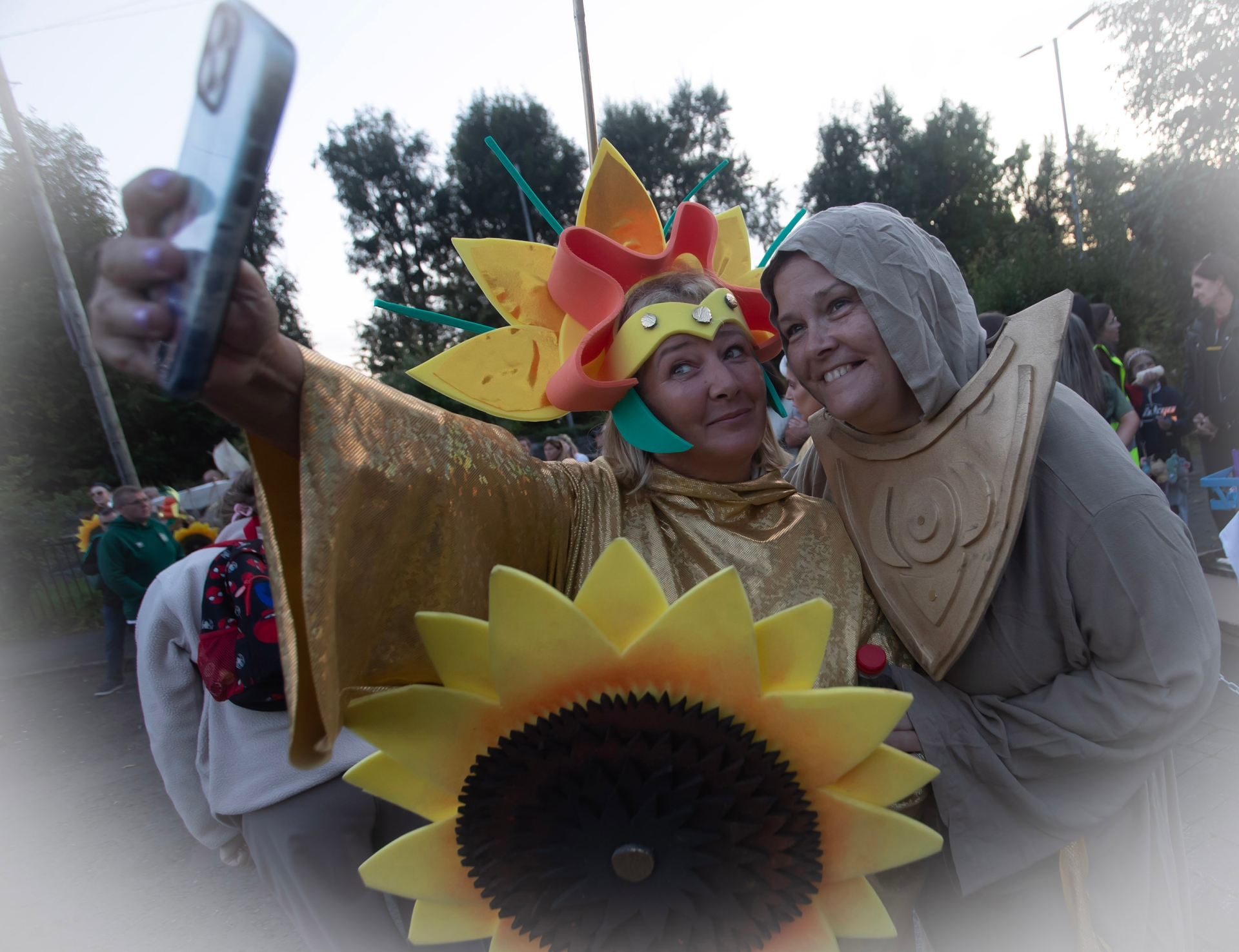 Two of the participants in the Feile's Solas get a selfie before starting the procession. (Photos: Jim McCafferty Photography)