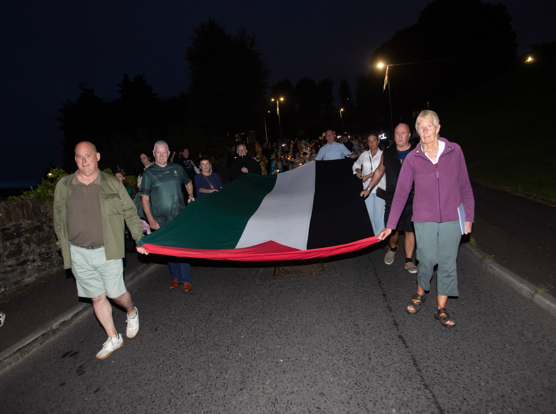 The Palestine flag being carried proudly at Friday night's Feile '25 'Solas Procession'. (Photos: Jim McCafferty Photography)