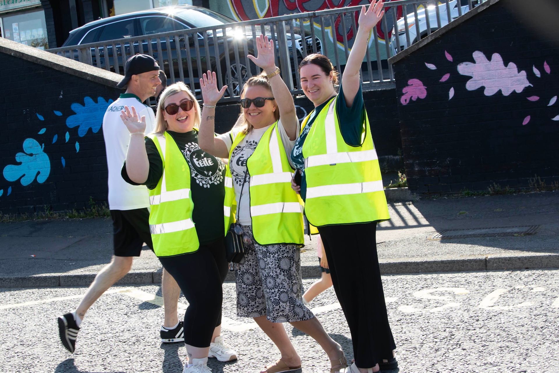 Some of the Feile volunteers wave for the camera on Friday. (Photos: Jim McCafferty Photography)