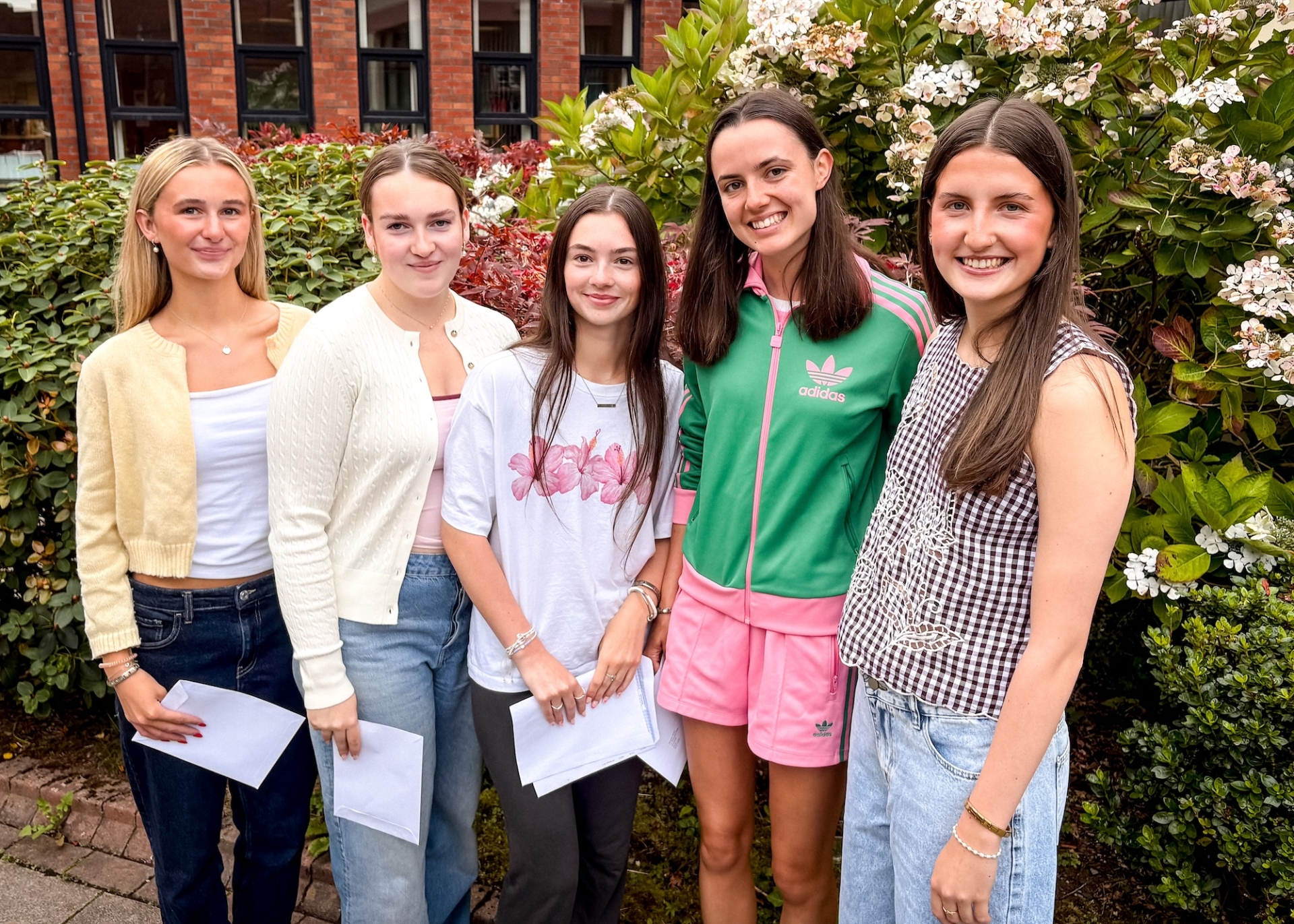 Friends Beth Tinney, Ellie Owen, Grace Lily Wilson, Hannah Wade and Amy Hegarty celebrate their A Level success in Thornhill College