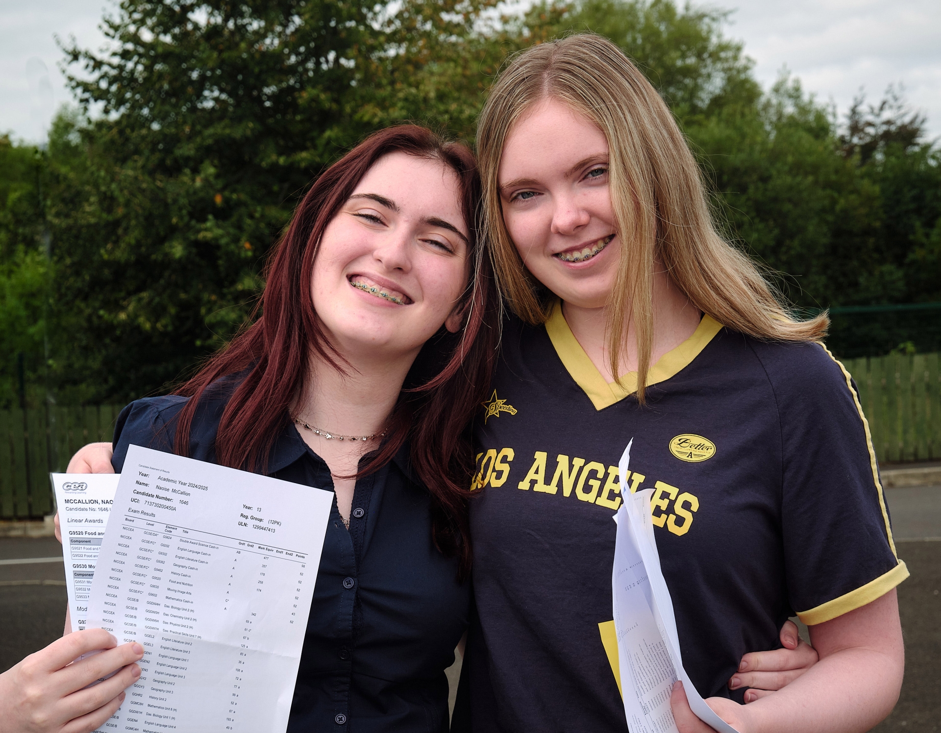 Twins Naiose, a student at Sperrin Integrated College and Amelia McCallion, a student at Rainey Endowed - all smiles after collecting their GCSE results.