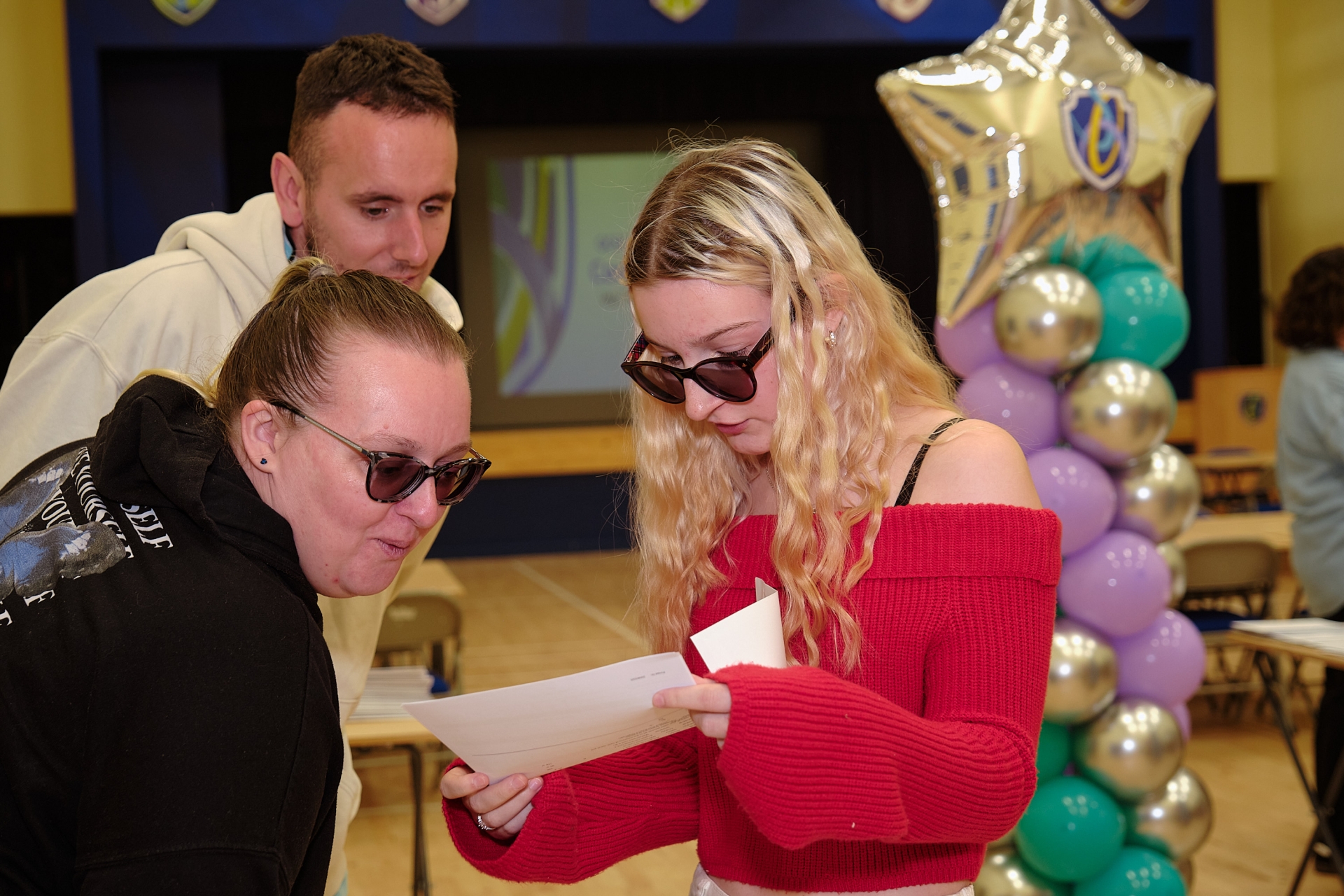 Lexie Forde with family members as they view her GCSE results at Sperrin Integrated College, Magherafelt.