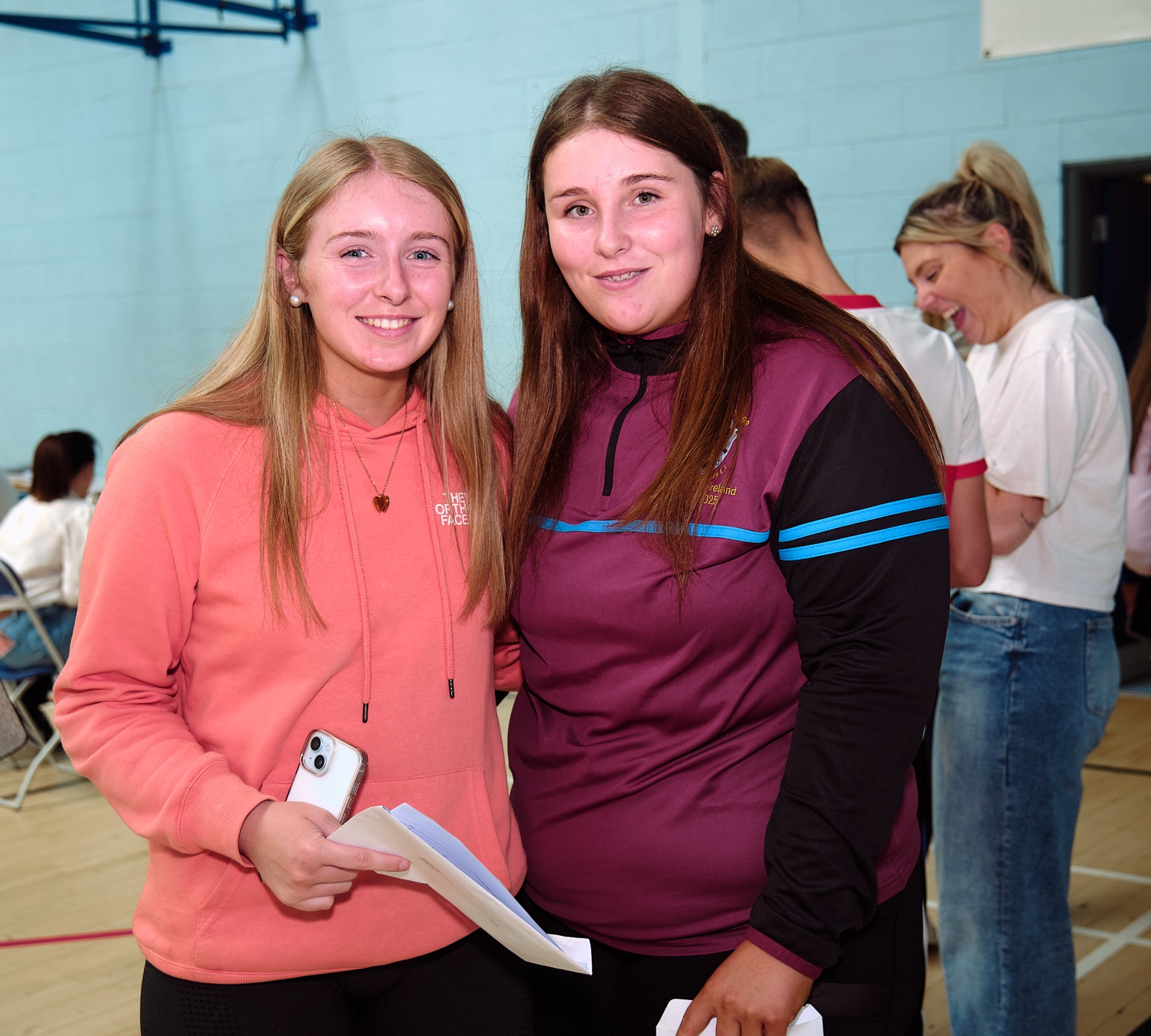 Ava Walls and Grace Darragh pictured when they collected their GCSE results at St Pius X College.