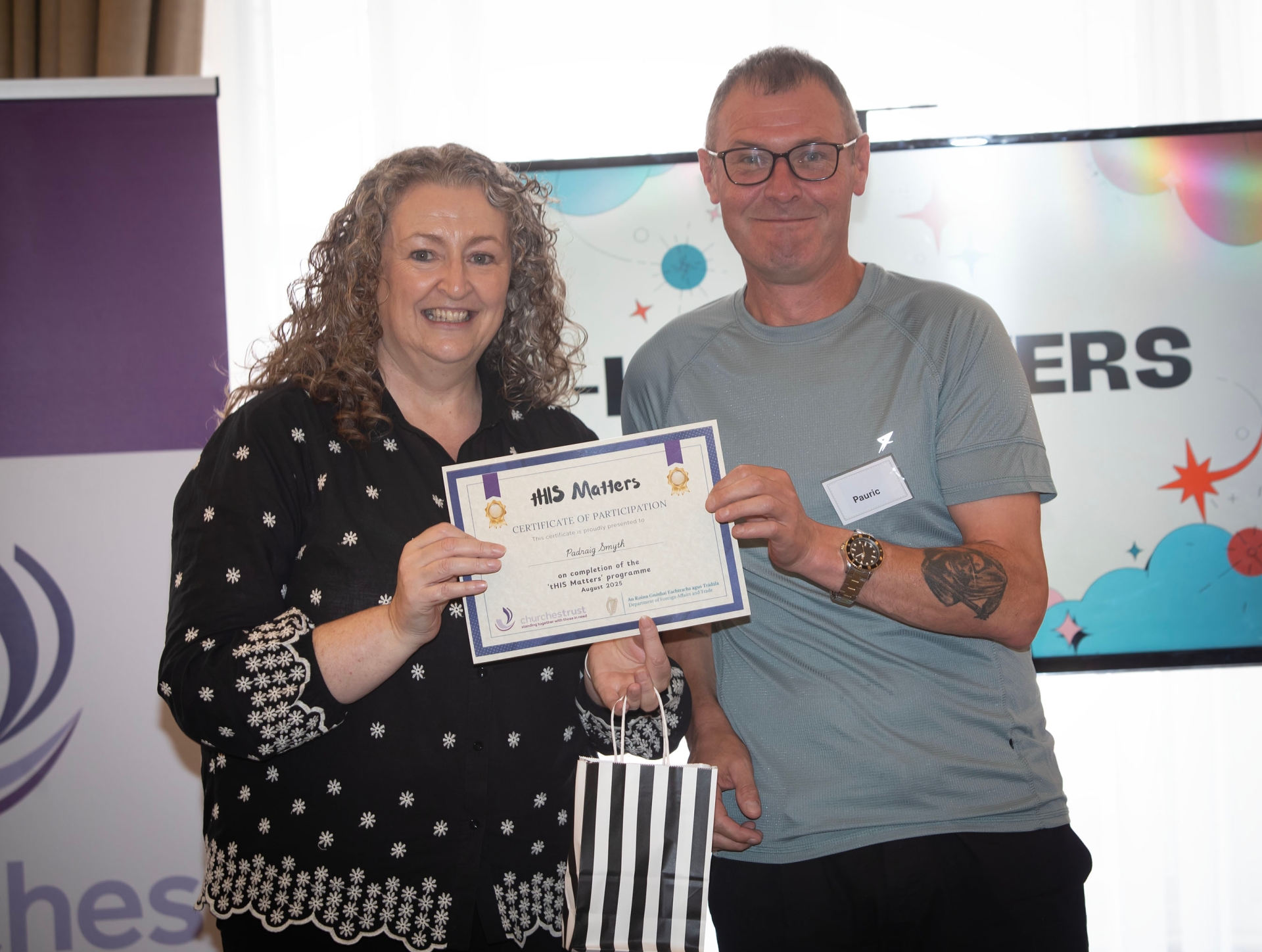 Mary Holmes, Chief Executive Officer, Churches Trust, presenting a certificate to Padraig Smyth on Tuesday last, on his completion of 'tHIS Matters' programme. (Photos: Jim McCafferty Photography)