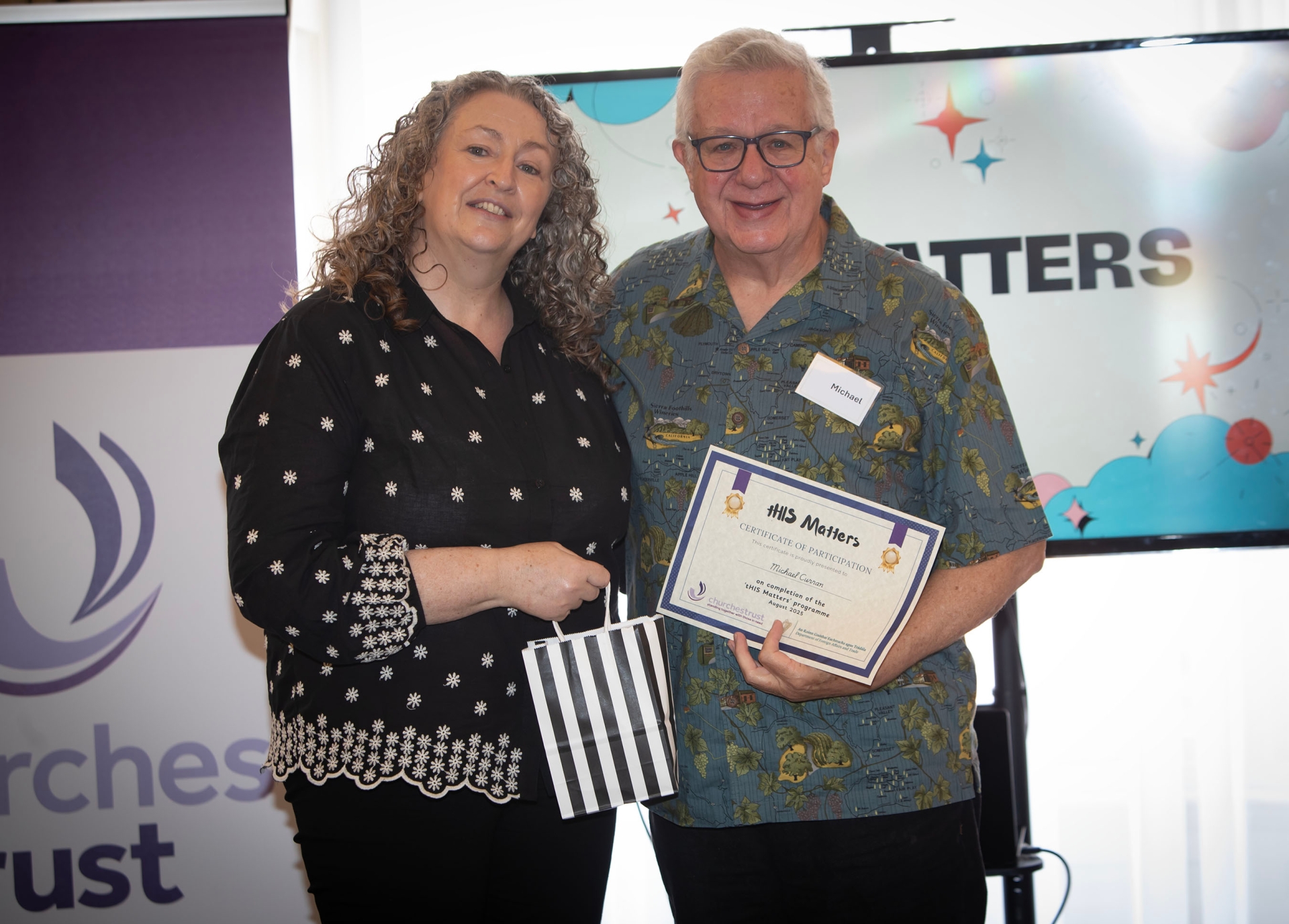 Mary Holmes, Chief Executive Officer, Churches Trust, presenting a certificate to Michael Curran.