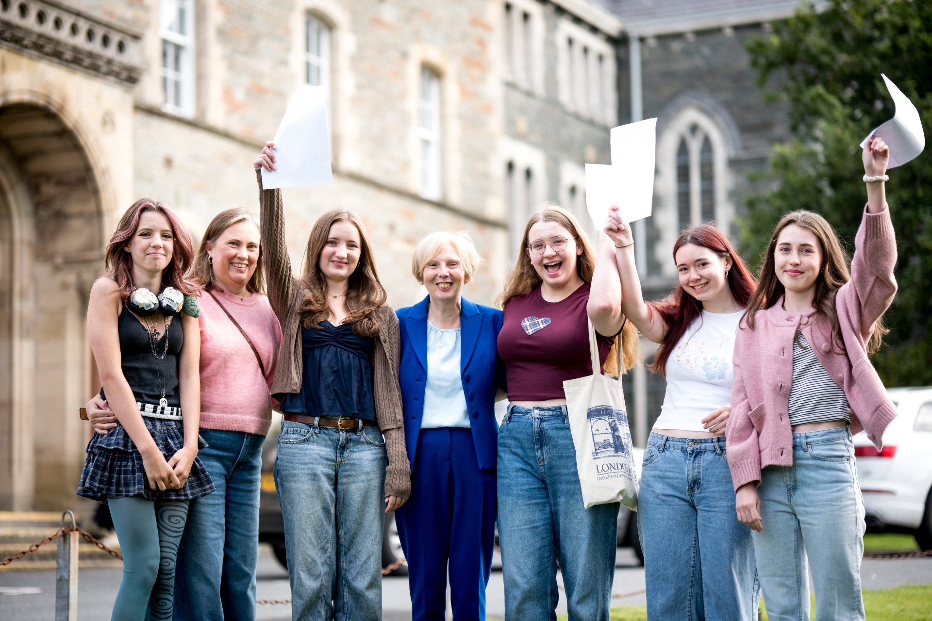 Hannah Donnelly, Rebecca Donnelly, Dr Ferris (Principal), Hannah Pollard, Emerald McGonigle and Lily Gallagher.