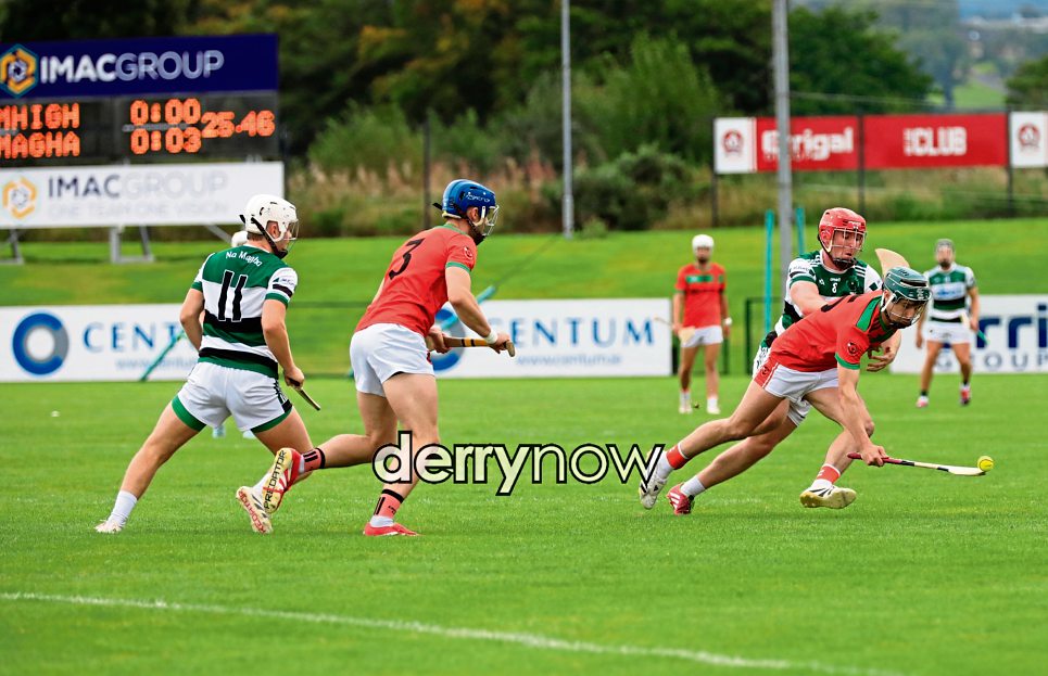 Action from the Lavey v Na Magha game in the Derry Hurling Championship Group A Round 2 at Owenbeg.