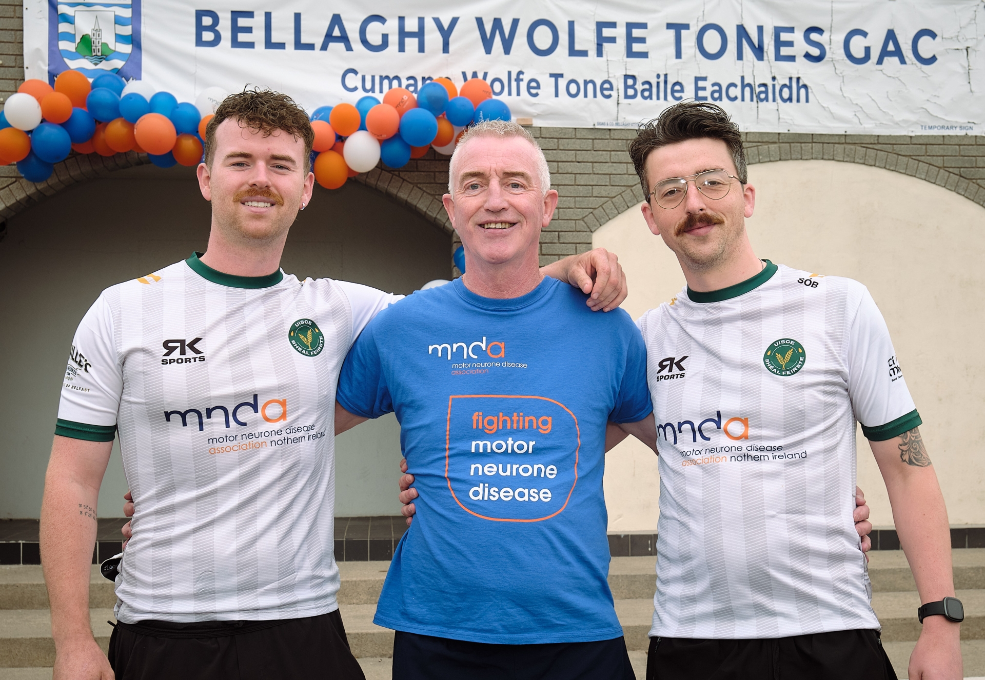 Mama (Seamus Birt) with his sons Eamon and Seamos Og who organised the Mama’s Day held at Bellaghy Wolf Tones in aid of the Motor Neurone Disease Association. The trio also plan to take part in a Skydive in aid of the Association.