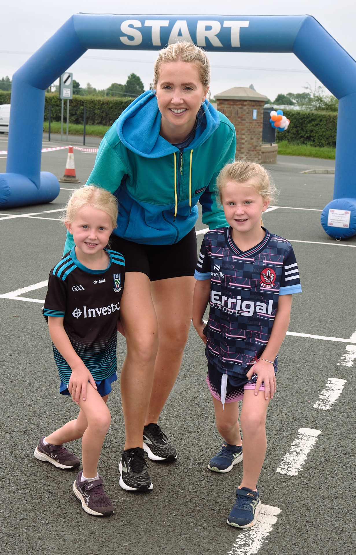Ready for the off at the Fun Run/Walk - Aileen Brown with daughters Aoife and Kate.