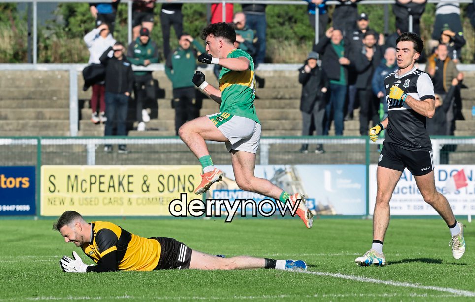 Glen Conleth McGuckian celebrates a goal against Dungiven during the Derry SFC match at Owenbeg.