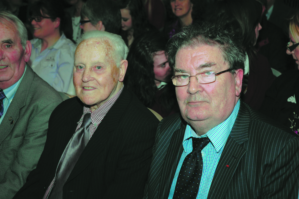 Two aul hands - Credit Union veterans, Paddy ‘Bogside’ Doherty and John Hume, enjoy the awards ceremony.