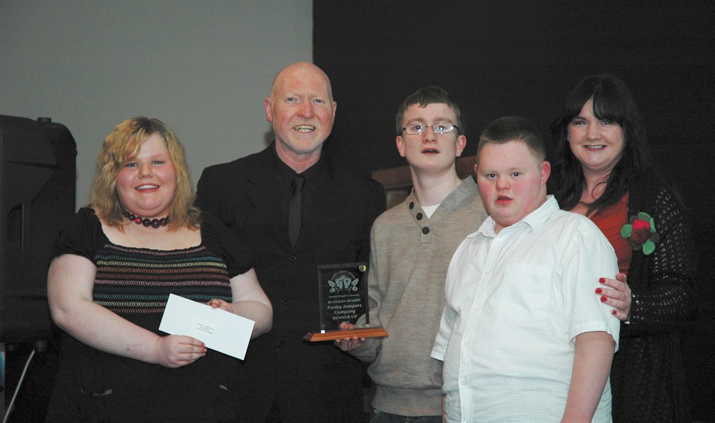 Members of the Funky Jumpers group receive their runners-up prize in the business category