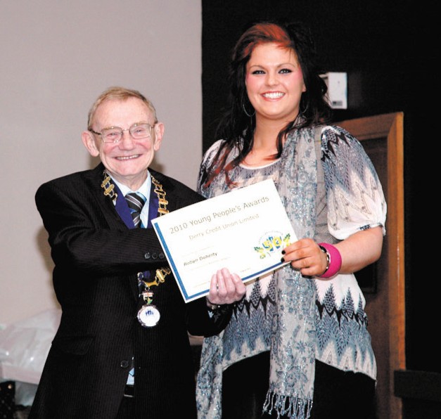 Robyn Doherty receives a certificate from Jim Travers