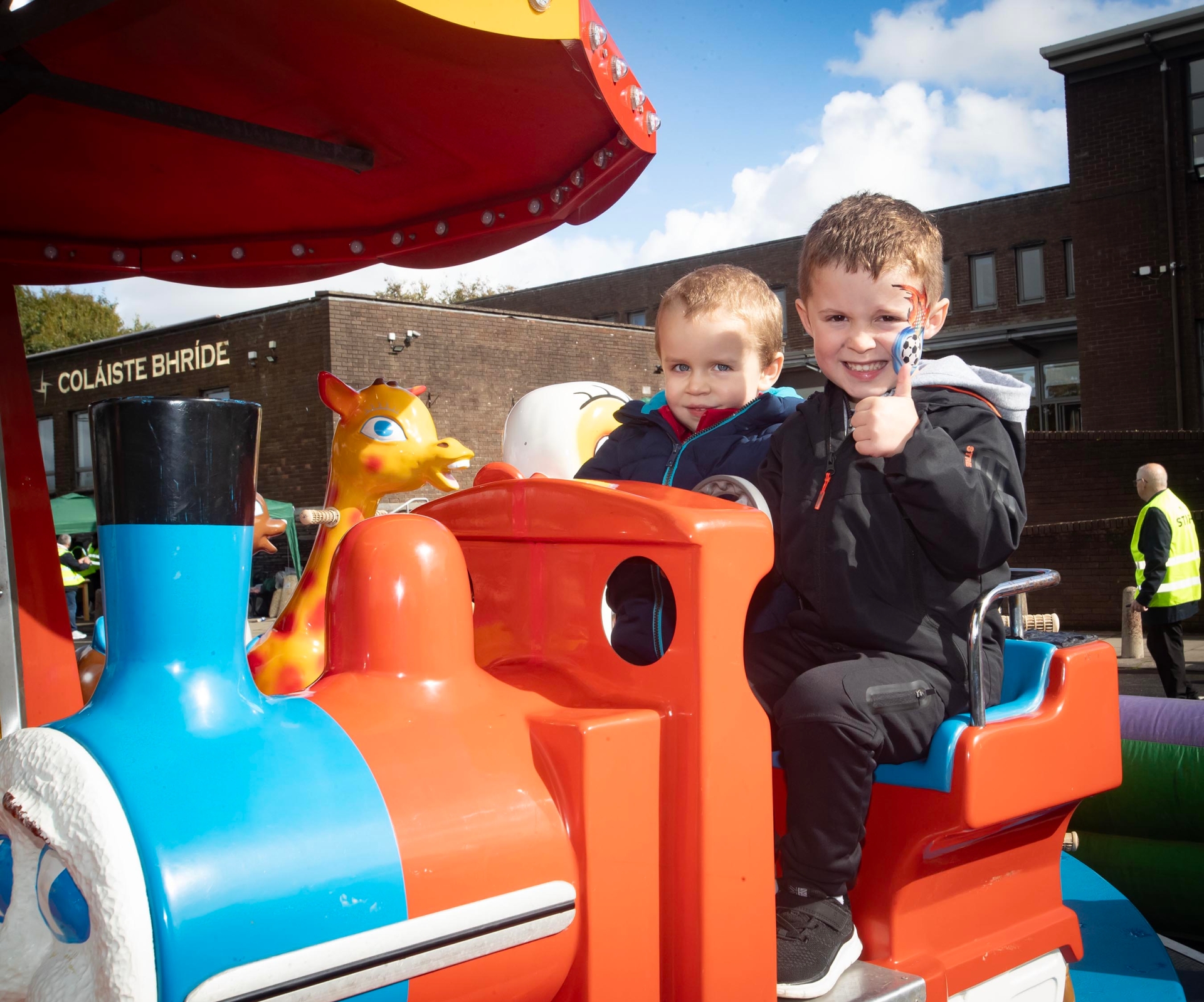 The Gill brothers - Eoin and Aodhan having fun on one of the rides at Saturday's Festival.