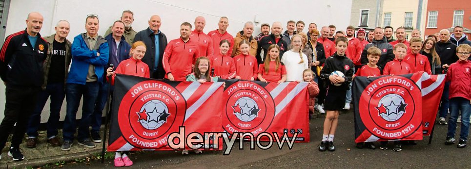 Family, friends, current and Ex players, coaches and committee members and those associated with Tristar Football Club pictured at the Official Unveiling of the New Mural of Big Ugg at Jon Clifford Park. (Photos - Deirdre Heaney, nwpresspics)