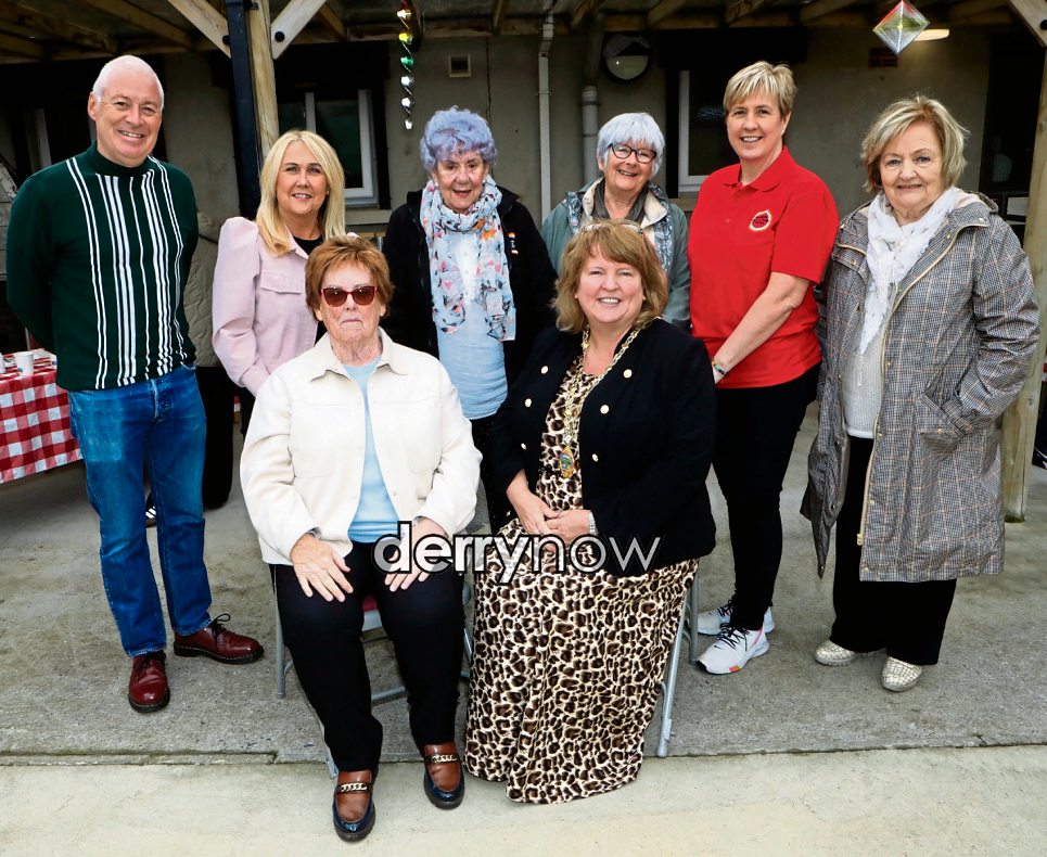 Deputy Mayor Niree McMorris with elected representatives and member of the Wellbeing Club. Seated, Alma Quigg. Standing, from left, are Colr. Pat Murphy, Ciara Ferguson, MLA, Margaret Smith, Kathleen Hannigan, Jacki Connolly, manager, Rainbow Child & Family Centre, and Rosemary Black.