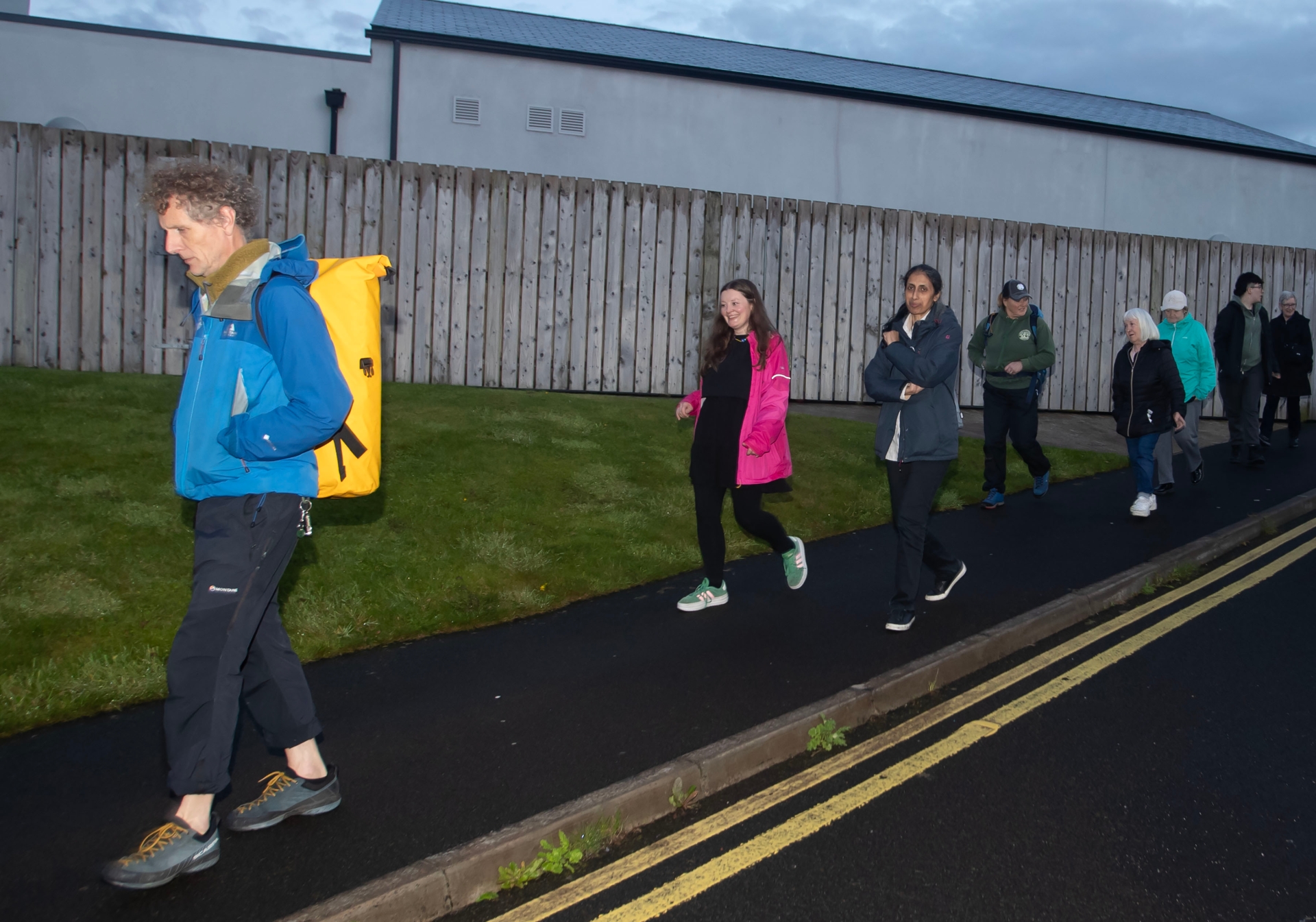 Tour guide Lorcan McBride leads off with the group on Thursday night.