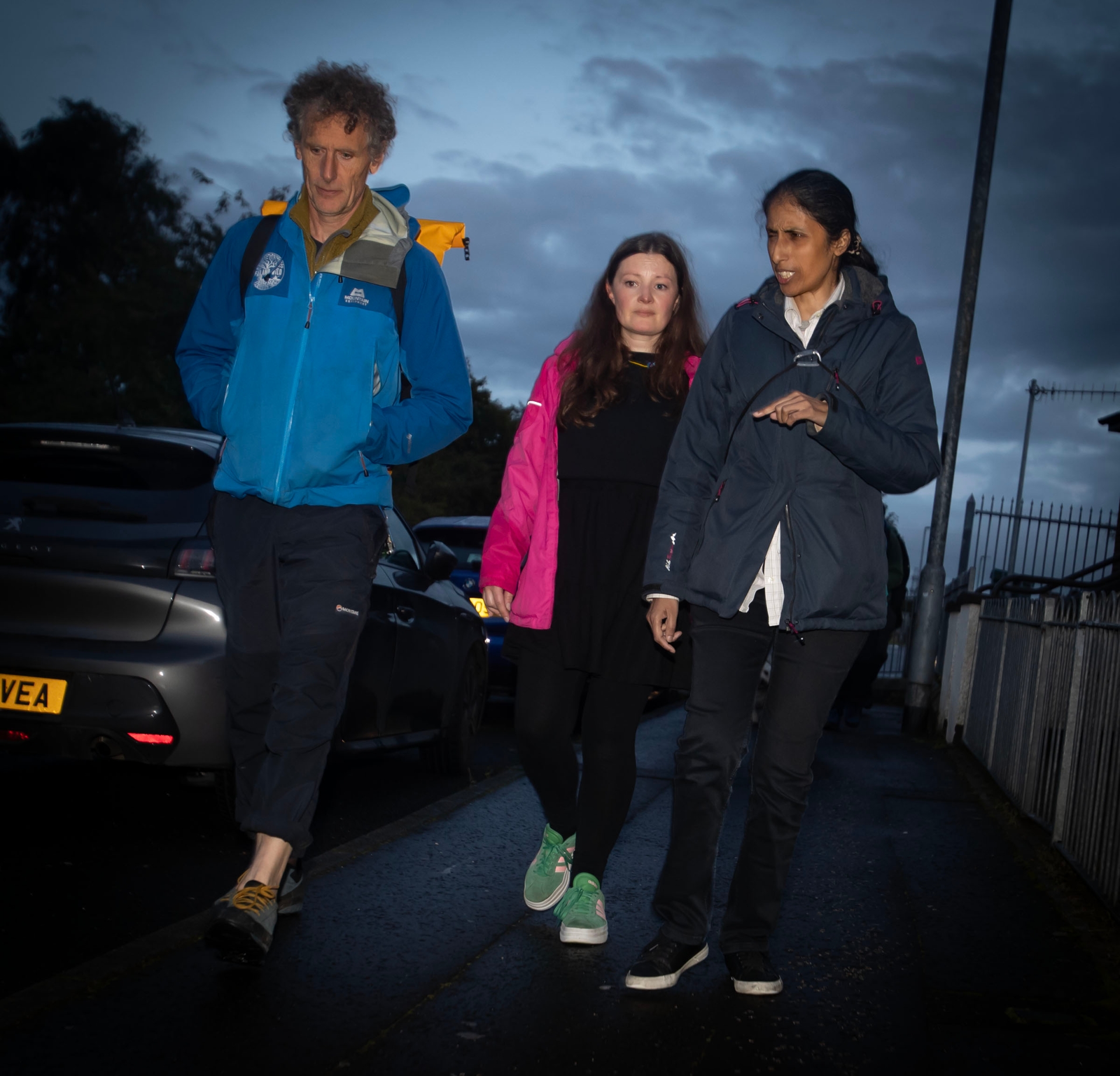 Dusk Dancer guide Lorcan McBride leads the way on Thursday night. Centre is co-ordinator Tansy McLaughlin.