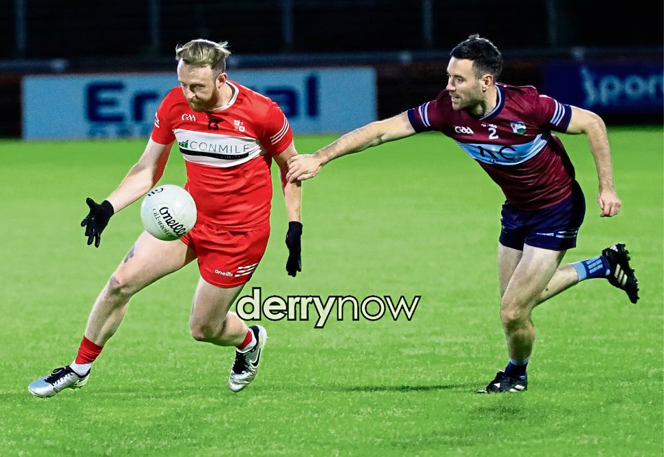 Magilliigan's Conor McFeely prepares to grab the ball.