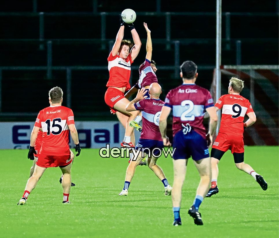 Action from the Glack v Magilligan game at Celtic Park.