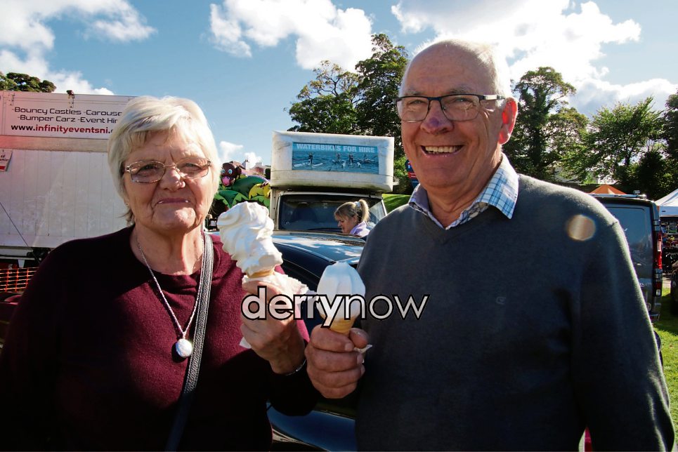 Enjoying an ice-cream at the show are Mildred McMillan and George McCauley.