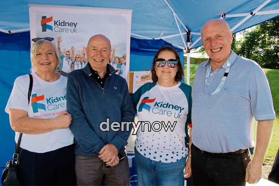 Carol McHugh and Audrey Keenan, Kidney Care Uk pictured with Ollie Warlock and Harry Rutherford, Road Safety N.I.
