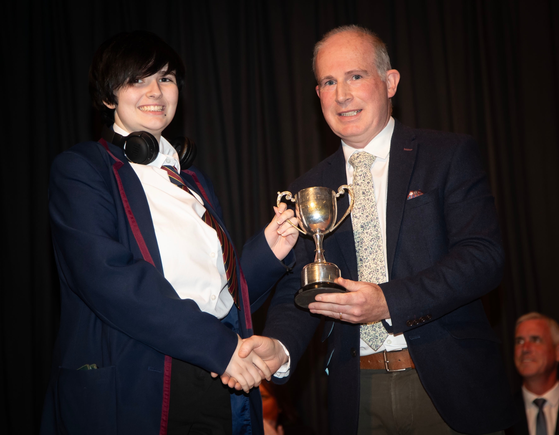 Megan Hasson, receiving the Music Award from Head of Year David Middelton at the Oakgrove Senior Prizegiving. Megan also was the recipient of the Carson Prize for an Amazing Composition during her GCSE Music Course.