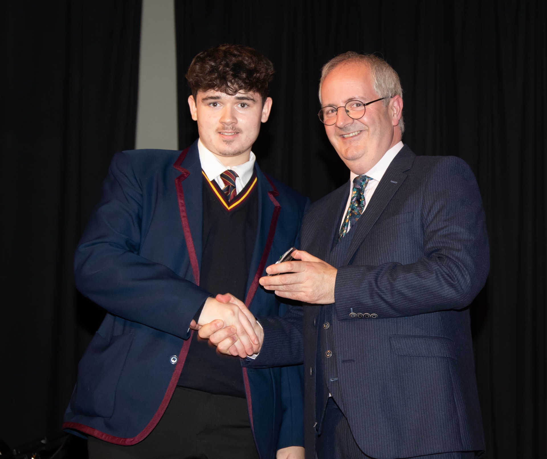 Spencer Cole, pictured receiving the Athletics Award from Mr John Harkin, Principal.
