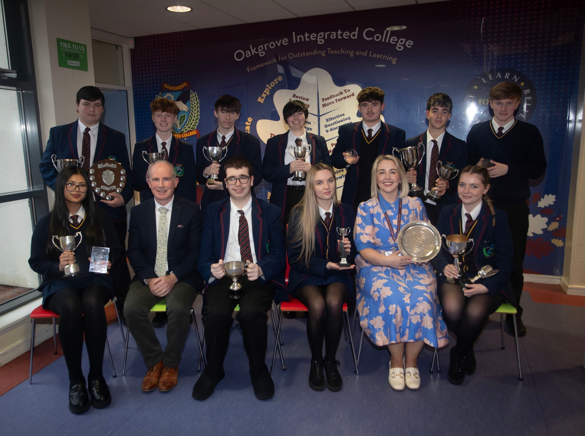 Year 12 curriculum prizewinners pictured with Head of Year, Mr David Middleton and Mrs Kellie-Marie Martin, Vice Principal at the Oakgrove Integrated College Senior Prizegiving. (Photos: Jim McCafferty Photography)