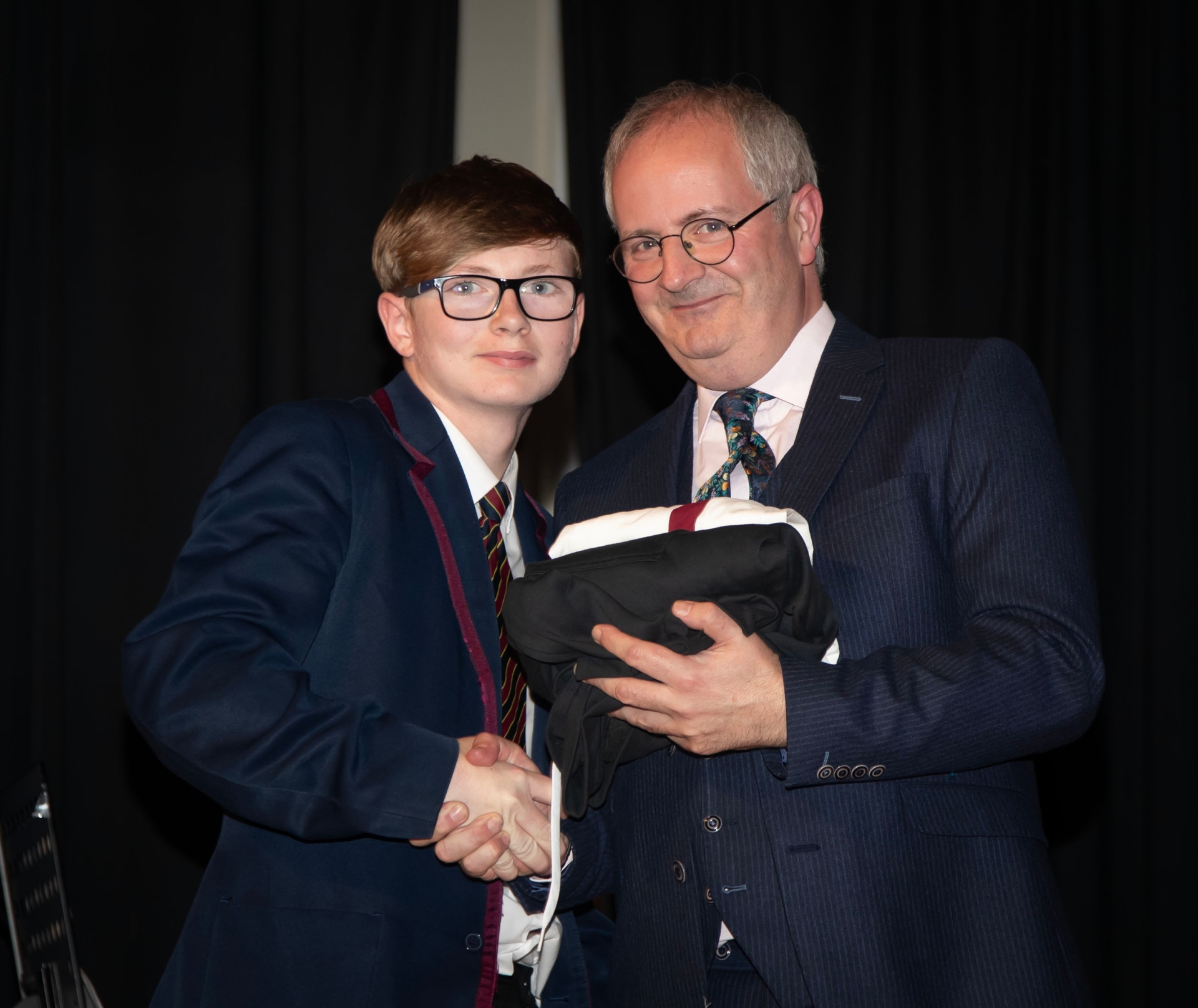 Corey Kennedy pictured receiving the Manchester United Foundation award for Contribution to Activities from Mr. Harkin.