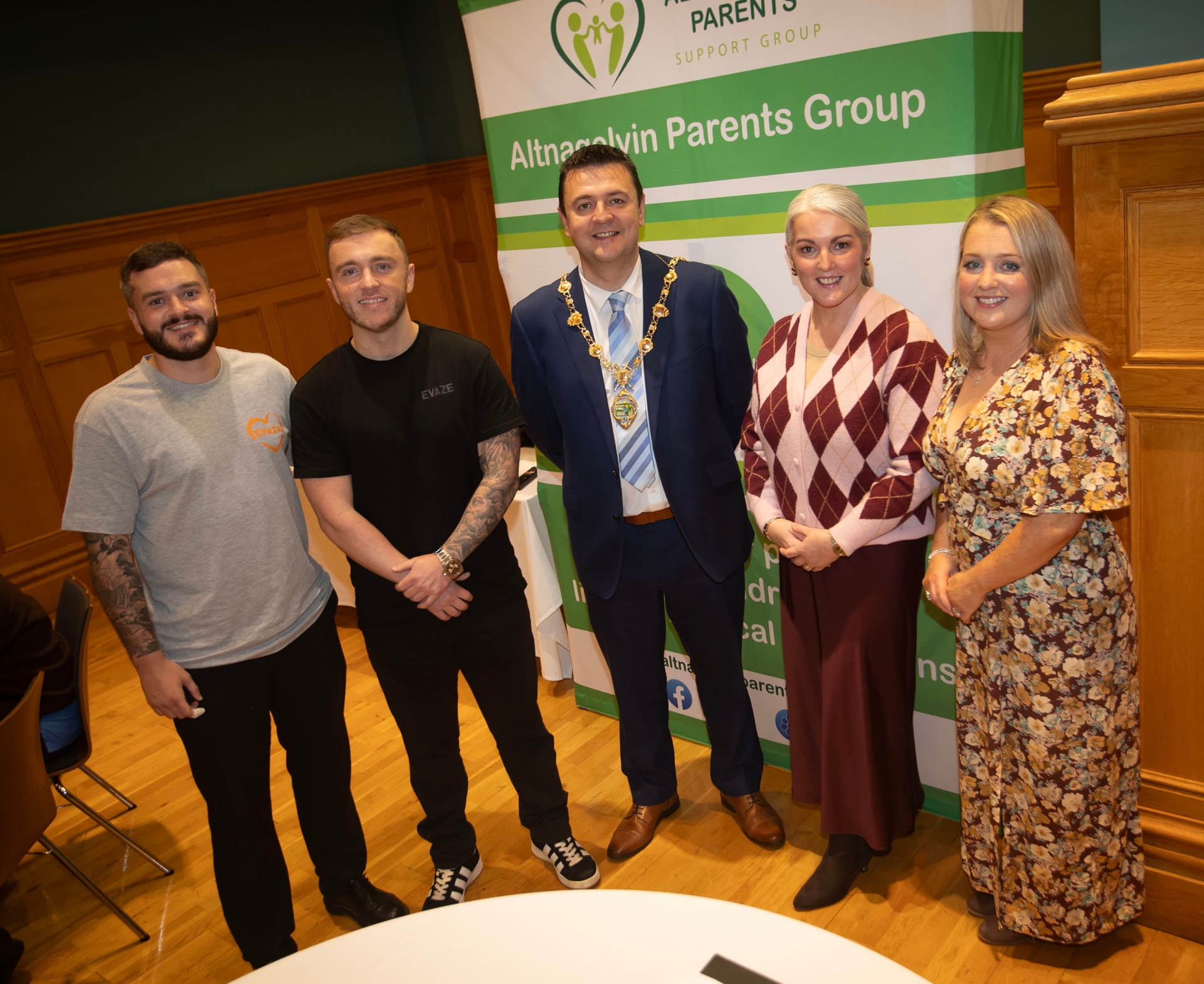 Group pictured at Thursday night's reception for Altnagelvin Parents Support Group held by the Mayor, Ruairi McHugh in the Guildhall. From left, Danny White, Jack McGuinness, Deirdre Cassidy (treasurer) and Lisa Storey (chair). (Photos: Jim McCafferty Photography)